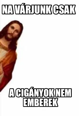 Make your own "Na várjunk csak a cigányok nem emberek" meme with MemeCreator's free online meme generator. Add text, stickers, and drawings — then download or share. No watermark, no sign-up required.