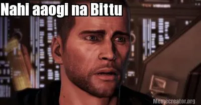 Make your own "Nahi aaogi na Bittu" meme with MemeCreator's free online meme generator. Add text, stickers, and drawings — then download or share. No watermark, no sign-up required.