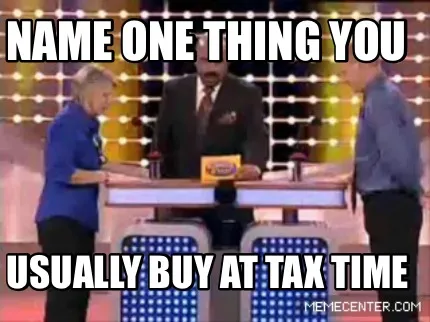 Make your own "Funny Name one thing you usually buy at tax time" meme with MemeCreator's free online meme generator. Add text, stickers, and drawings — then download or share. No watermark, no sign-up required.