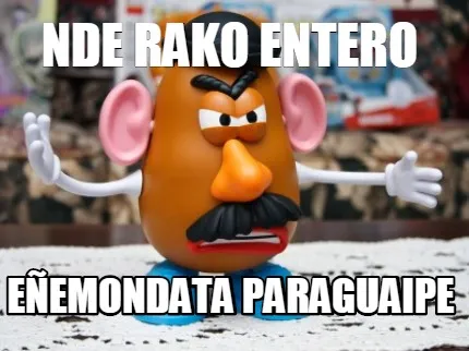 Make your own "Nde rako entero eñemondata paraguaipe" meme with MemeCreator's free online meme generator. Add text, stickers, and drawings — then download or share. No watermark, no sign-up required.