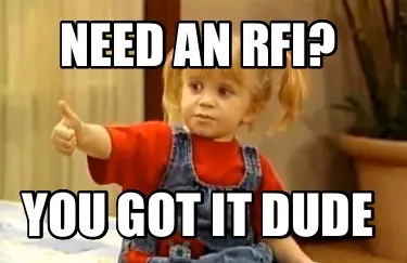 Make your own "Funny need an RFI? you got it dude" meme with MemeCreator's free online meme generator. Add text, stickers, and drawings — then download or share. No watermark, no sign-up required.