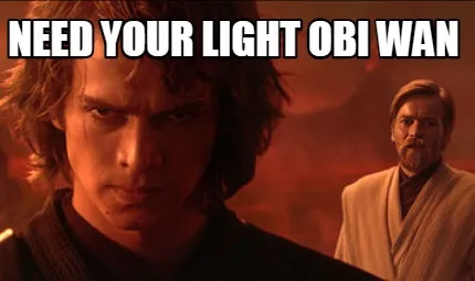 Make your own "Need your light Obi wan" meme with MemeCreator's free online meme generator. Add text, stickers, and drawings — then download or share. No watermark, no sign-up required.