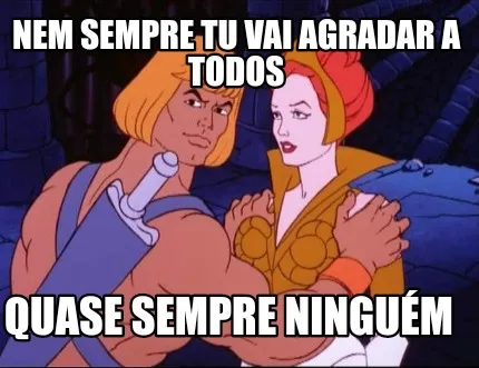 Make your own "Nem sempre tu vai agradar a todos Quase sempre ninguém" meme with MemeCreator's free online meme generator. Add text, stickers, and drawings — then download or share. No watermark, no sign-up required.