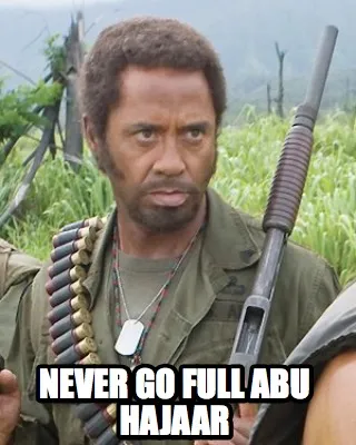 Make your own "Funny Never go full abu hajaar" meme with MemeCreator's free online meme generator. Add text, stickers, and drawings — then download or share. No watermark, no sign-up required.