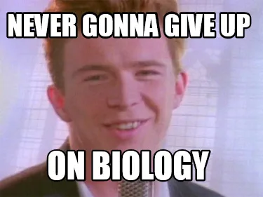 Funny Never gonna give up on biology Meme Template