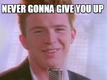 Make your own "Funny never gonna give you up" meme with MemeCreator's free online meme generator. Add text, stickers, and drawings — then download or share. No watermark, no sign-up required.