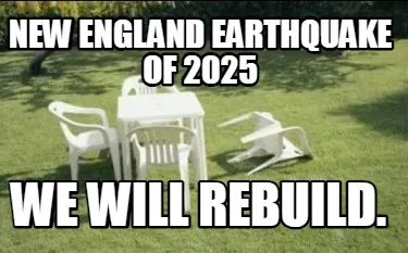 Make your own "New england earthquake of 2025 We will rebuild." meme with MemeCreator's free online meme generator. Add text, stickers, and drawings — then download or share. No watermark, no sign-up required.