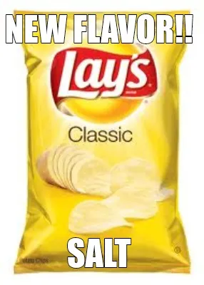 Make your own "NEW FLAVOR!! SALT" meme with MemeCreator's free online meme generator. Add text, stickers, and drawings — then download or share. No watermark, no sign-up required.