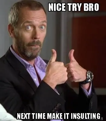 NICE TRY BRO NEXT TIME MAKE IT INSULTING Meme Template