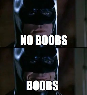 Make your own "No boobs boobs" meme with MemeCreator's free online meme generator. Add text, stickers, and drawings — then download or share. No watermark, no sign-up required.