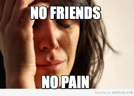 Make your own "No friends no pain" meme with MemeCreator's free online meme generator. Add text, stickers, and drawings — then download or share. No watermark, no sign-up required.