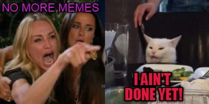Make your own "No More" meme with MemeCreator's free online meme generator. Add text, stickers, and drawings — then download or share. No watermark, no sign-up required.