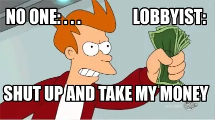 No One . . . Lobbyist Shut Up And Take My Money Meme Template