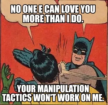 Create Funny No one e can love you more than I do. Your manipulation tactics won't work on me Meme