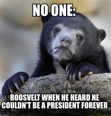Create Funny no one: Roosvelt when he heard he couldn't be a president forever Meme