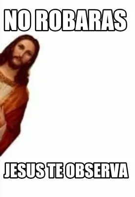 Make your own "NO ROBARAS Jesus te observa" meme with MemeCreator's free online meme generator. Add text, stickers, and drawings — then download or share. No watermark, no sign-up required.