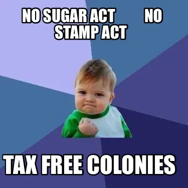 No sugar act No stamp act Tax free colonies Meme Template
