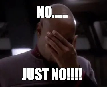 Make your own "Funny No...... just no!!!!" meme with MemeCreator's free online meme generator. Add text, stickers, and drawings — then download or share. No watermark, no sign-up required.