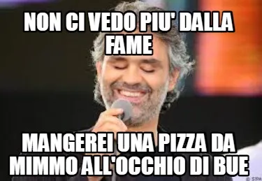 NON CI VEDO PIU' DALLA FAME MANGEREI UNA PIZZA DA MIMMO ALL'OCCHIO DI BUE Meme Template
