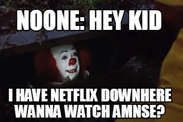 Make your own "Funny noone: HEY KID i have netflix downhere wanna watch amnse?" meme with MemeCreator's free online meme generator. Add text, stickers, and drawings — then download or share. No watermark, no sign-up required.