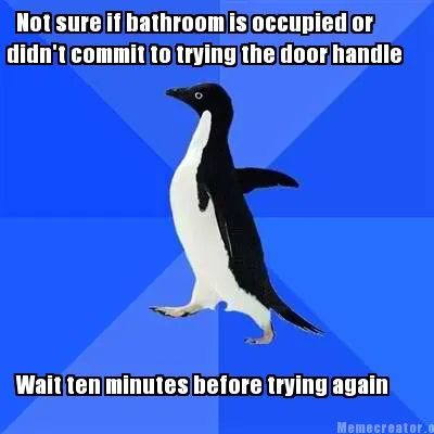 Create Funny Not sure if bathroom is occupied or didn't commit to trying the door handle Wait Meme