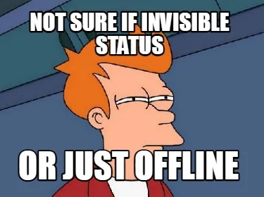 Make your own "Funny Not sure if invisible status Or just offline" meme with MemeCreator's free online meme generator. Add text, stickers, and drawings — then download or share. No watermark, no sign-up required.