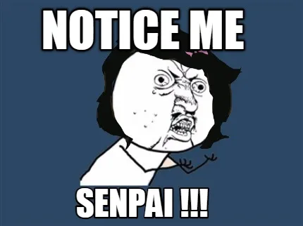 Make your own "Notice me SENPAI !!!" meme with MemeCreator's free online meme generator. Add text, stickers, and drawings — then download or share. No watermark, no sign-up required.