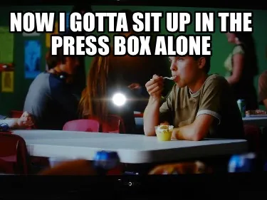 Create Funny now i gotta sit up in the press box alone Meme