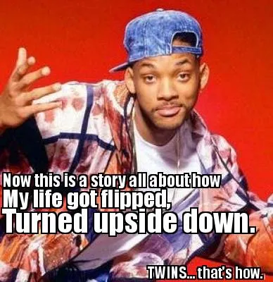 Funny Now this is a story all about how My life got flipped, Turned upside down. TWINS Meme Template
