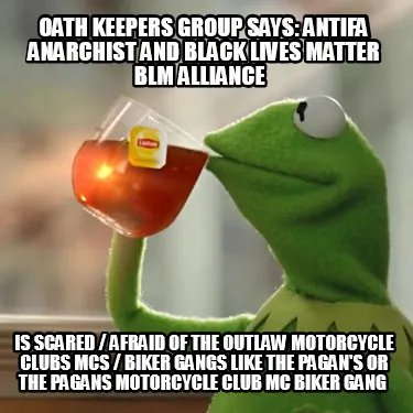 Make your own "Funny Oath Keepers Group says: Antifa Anarchist and Black Lives Matter BLM Alliance" meme with MemeCreator's free online meme generator. Add text, stickers, and drawings — then download or share. No watermark, no sign-up required.