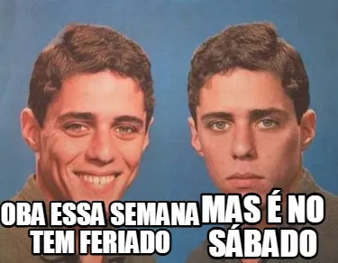 Make your own "Oba essa semana tem feriado mas é no sábado" meme with MemeCreator's free online meme generator. Add text, stickers, and drawings — then download or share. No watermark, no sign-up required.