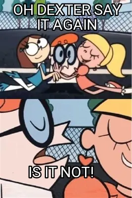 Make your own "Funny Oh Dexter say it again Is it not!" meme with MemeCreator's free online meme generator. Add text, stickers, and drawings — then download or share. No watermark, no sign-up required.