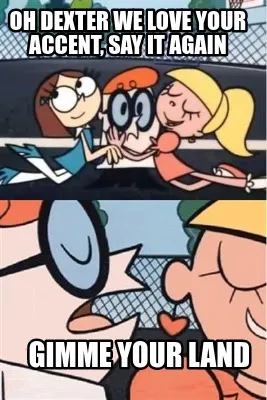 Create Funny Oh dexter we love your accent, say it again gimme your land Meme