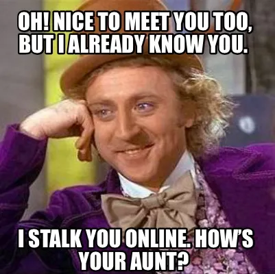 Funny Oh! Nice to meet you too, but I already know you. I stalk you online. How’s y Meme Template