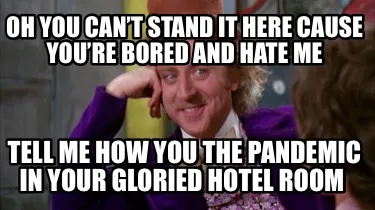 Make your own "Oh you can’t stand it here cause you’re bored and hate me Tell me how you th" meme with MemeCreator's free online meme generator. Add text, stickers, and drawings — then download or share. No watermark, no sign-up required.