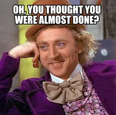 Funny Oh, you thought you were almost done? Meme Template