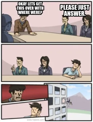 Funny okay lets get this over with where were? please just answer. Meme Template