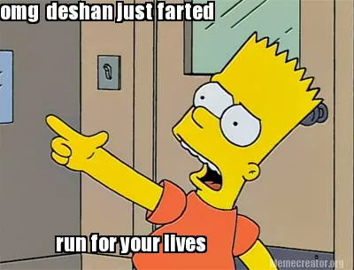 Make your own "Funny omg deshan just farted run for your lives" meme with MemeCreator's free online meme generator. Add text, stickers, and drawings — then download or share. No watermark, no sign-up required.