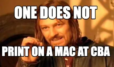 ONE DOES NOT PRINT ON A MAC AT CBA Meme Template
