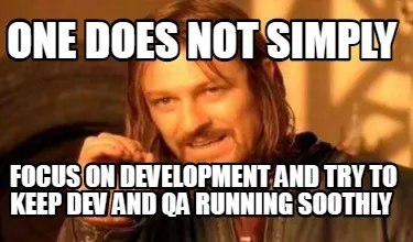 Create Funny One does not simply focus on development and try to keep dev and Qa running soot Meme