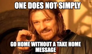 Make your own "Funny One does not simply go home without a take home message" meme with MemeCreator's free online meme generator. Add text, stickers, and drawings — then download or share. No watermark, no sign-up required.