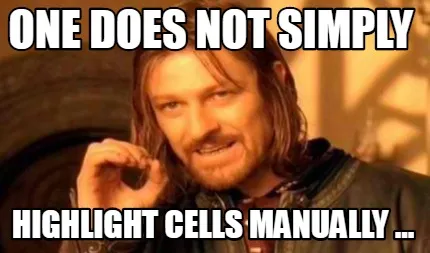Create Funny ONE DOES NOT SIMPLY HIGHLIGHT CELLS MANUALLY ... Meme