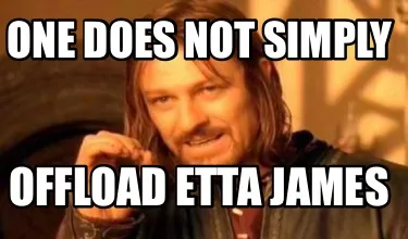 Make your own "One does not simply Offload Etta james" meme with MemeCreator's free online meme generator. Add text, stickers, and drawings — then download or share. No watermark, no sign-up required.