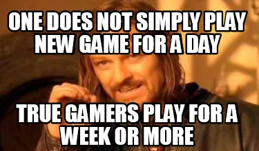 Create Funny one does not simply play new game for a day true gamers play for a week or more Meme