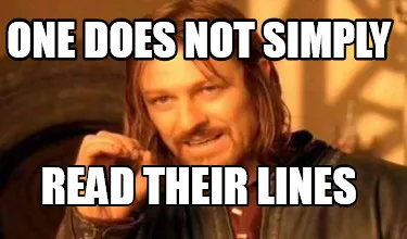 Make your own "Funny One does not simply read their lines" meme with MemeCreator's free online meme generator. Add text, stickers, and drawings — then download or share. No watermark, no sign-up required.