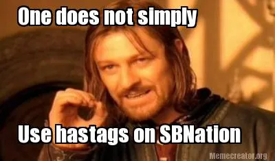 Make your own "One does not simply Use hastags on SBNation" meme with MemeCreator's free online meme generator. Add text, stickers, and drawings — then download or share. No watermark, no sign-up required.
