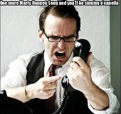Make your own "One more Marty Haugen Song and you'll be singing a'capella" meme with MemeCreator's free online meme generator. Add text, stickers, and drawings — then download or share. No watermark, no sign-up required.