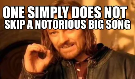 Make your own "One simply does not Skip a Notorious Big song" meme with MemeCreator's free online meme generator. Add text, stickers, and drawings — then download or share. No watermark, no sign-up required.