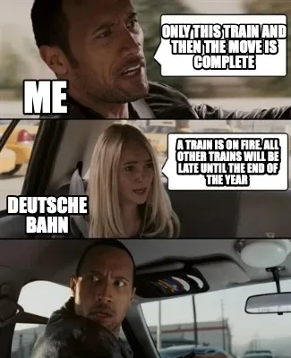 Make your own "Only this train and then the move is complete A train is on fire, all other trai" meme with MemeCreator's free online meme generator. Add text, stickers, and drawings — then download or share. No watermark, no sign-up required.