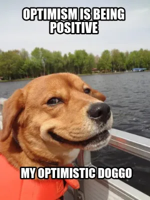 Make your own "Optimism is being positive my optimistic doggo" meme with MemeCreator's free online meme generator. Add text, stickers, and drawings — then download or share. No watermark, no sign-up required.